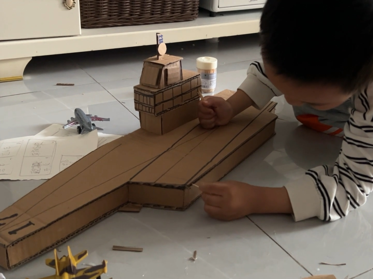 我们需要设计航天母舰的图纸,可以通过网络查找真实的航天母舰图片,了解其基本结构和特点,根据自己的喜好,绘制出航天母舰的平面布局图,这一步是手工制作的关键,需要耐心和细心。