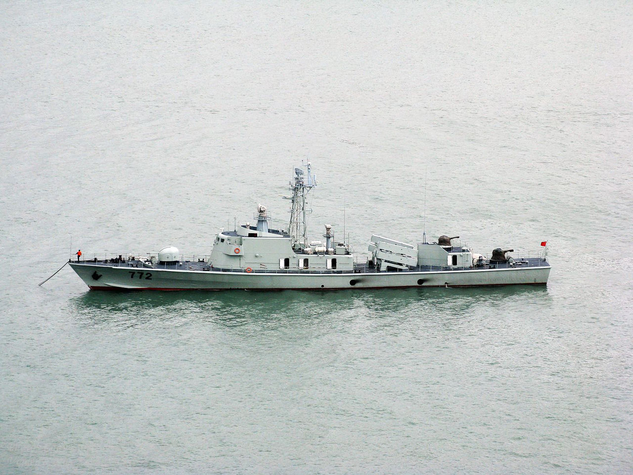 1、艇体设计:037G1型导弹快艇采用先进的艇体设计,具有良好的隐蔽性和机动性,其流线型的外观和轻质材料的应用,使得它在高速移动时仍能保持较高的稳定性。