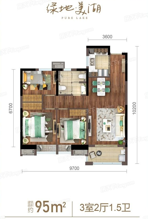 绿地美湖B户型图的设计理念是以人为本,注重居住者的生活需求,该户型的特点如下:
